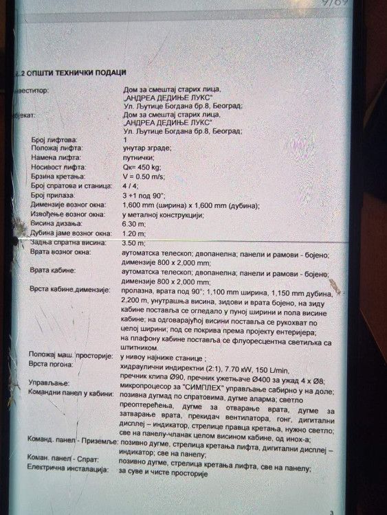 Nosivost: 450kg, Brzina kretanja: 0,50m/s, Dimenzije voznog okna: 1,100mm (š), 1,150mm (dubina), 2,200mm unutrašnja visina. Visina dizanja: 6,30m, Dubina jame voznog okna: 1,20m, Zadnja spratna visina: 3,50m, Ostale karakteristike imate na slikama. Ekstra stanje malo koriscen. Cena po dogovoru. Kontakt: +381603223606 |