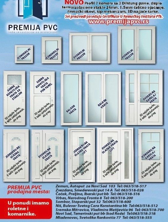 | "Najpovoljnija nova gotova pvc stolarija sa 7 komora, 3 dihtung gume Nemačke fabrike Quadroform, preko 1.500 komada na stanju na svakom stovarištu posetite nas sajt: www.premija pvc.rs