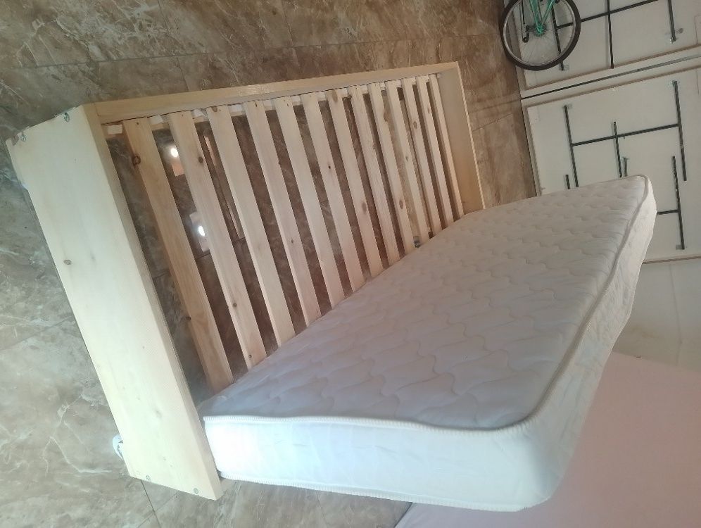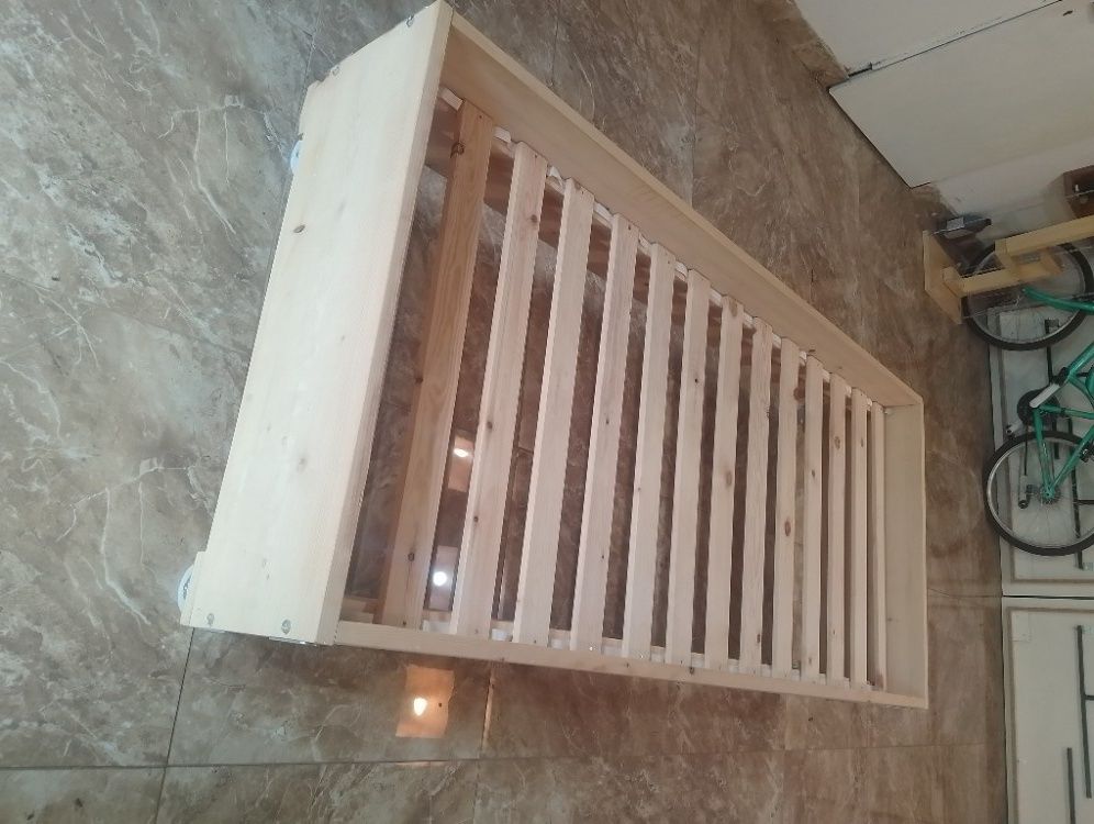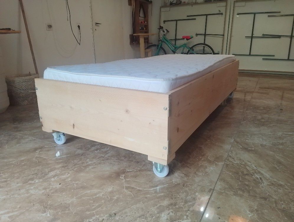Krevet je na točkićima od kojih su dva sa kočnicom. Krevet j izrađen od čamovog drveta i lakiran bezbojnim netoksičnim lakom na vodenoj bazi. Samo lično preuzimanje u Požarevcu. | |