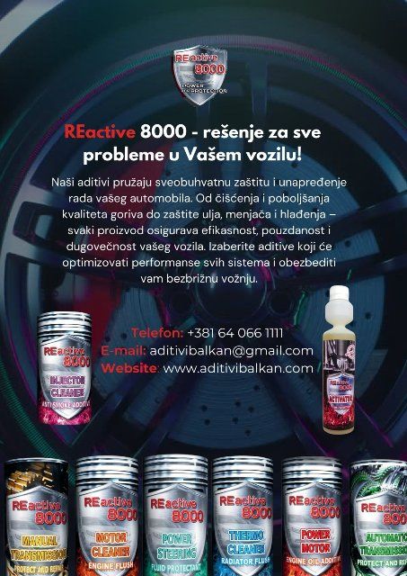 Nano aditivi za automobile i za sva motorna vozila. Reactive 8000. Aditivi vodeći u svetu i preko 50 godina na tržištu. Napravljeni posebnim formulama koje ne štete prirodi kao ni motornim vozilima.