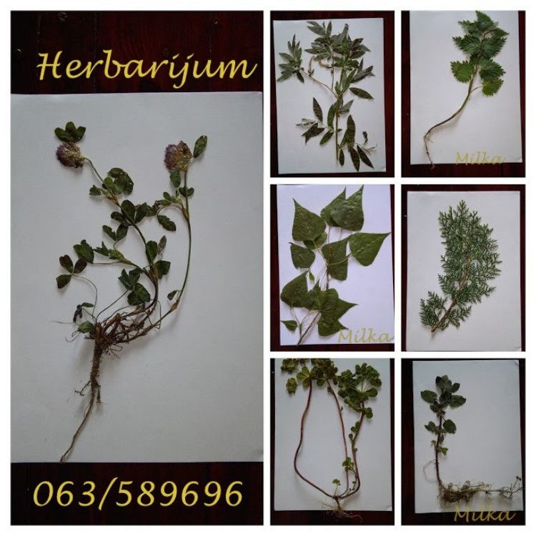 | Nove determinisane biljke za Vaš herbarijum livadske, lekovite, biljke iz bašte, korovi, žitarice, paprati, mahovina, četinari, listopadno drveće.. Prodaja na komad, kupujete biljke koje želite i količinu koju želite. Cena zavisi od količine i vrste biljke. Uz svaku biljku dobijate podatke o njoj; Narodni naziv, Familijom, Latinski naziv, Stanište Možete me kontaktirati preko Vibera i tamo mi dostaviti spisak biljaka koje želite a ja ću Vam javiti koliko to košta. U ponudi preko 200 različitih vrsta. Cena je od 35 dinara pa naviše, zavisi od količine i vrste biljke. 063/589696 Milka. Slanje postexpresom.