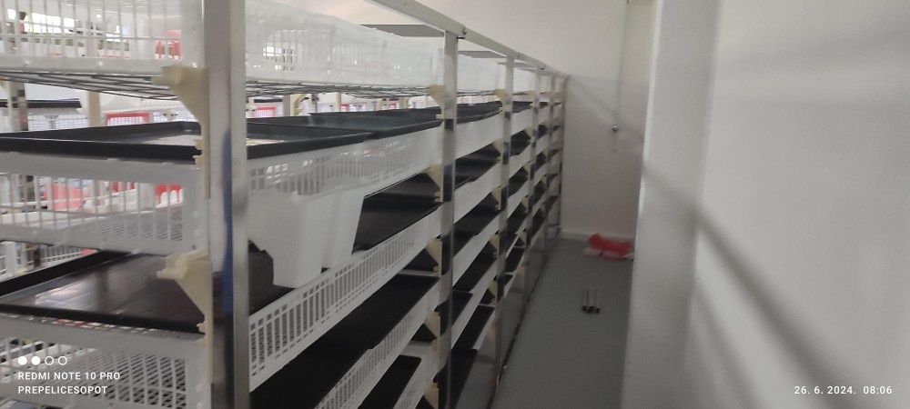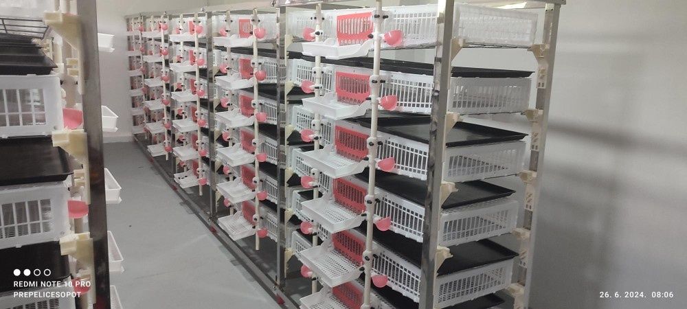 | Na prodaju NOVI, nekorišteni, profesionalni kavezi za uzgoj prepelica. Ramovi su od nerdjajucih metalnih profila, dok su kavezne korpe izradjene od prehrambene plastike. Kavezi su uveženi iz Kine. Ukupan kapacitet je za 750 prepelica.