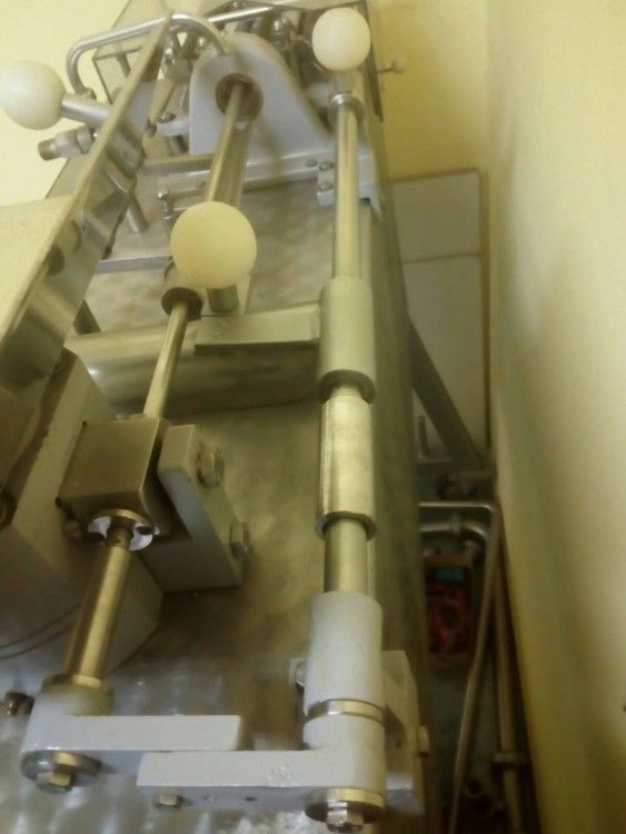 Masina za parovanje-punjenje virsle, industrijska, poluautomatska Karakteristike: Nosac lanca linker -Aluminijumsko postolje sa lancanicima korak 3/8 I rlnica 5,08 LANAC - Duzina lanca je 70 koraka ili 656,75mm; - Na lancu postoji 5 leptira koji daju duzinu virsli. - Duzina virsli odredjuje broj leptira na lancu I duzina lanca. PRENOSI-REMENJE Elektromotor -pumpa klinasti kaiš 1657x10 – 3 komentara - Pumpa-linker lanci varijator kaiš 1400x28 – 1 komentara Napajanje: Ulaz 380V Uključivanje I isključivanje 24V Tehnički opis - Kapacitet mašine: 500kg/h -Kapacitet zupčaste pumpe: 600kg/h - Elektro motor: 1,5KW; 900 0/min -Brzina obrtanja zupčaste pumpe: 200 0/min -Brzina lanca linkera 25m/min a moze da se menja preko mehanikog menjača 15% -Kretanje lanca linkera vrši se preko varijator remenice. Mašina se priključuje na punilicu mase cevima prečnika 38 I pritiskom 3-4 bara. Masina je nova, izradjena od nerdjajucih materijala (prohrom, poliamid) u nasoj samostalno | |