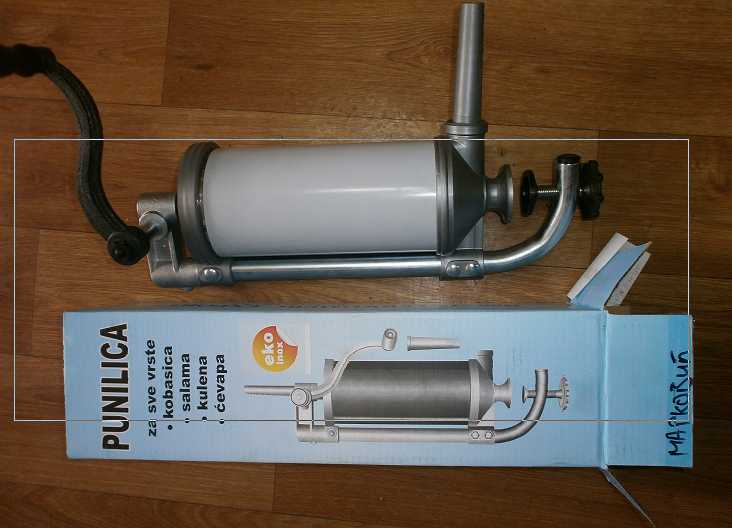 | U ponudi punilice za kobasice Protok Vinkovci inox 2 vrste. pistolji za svinje, municija, kuke niklovane za meso, cengele, breneri... 27.aprila 82 lucicki put. 064 54 21 643. | |