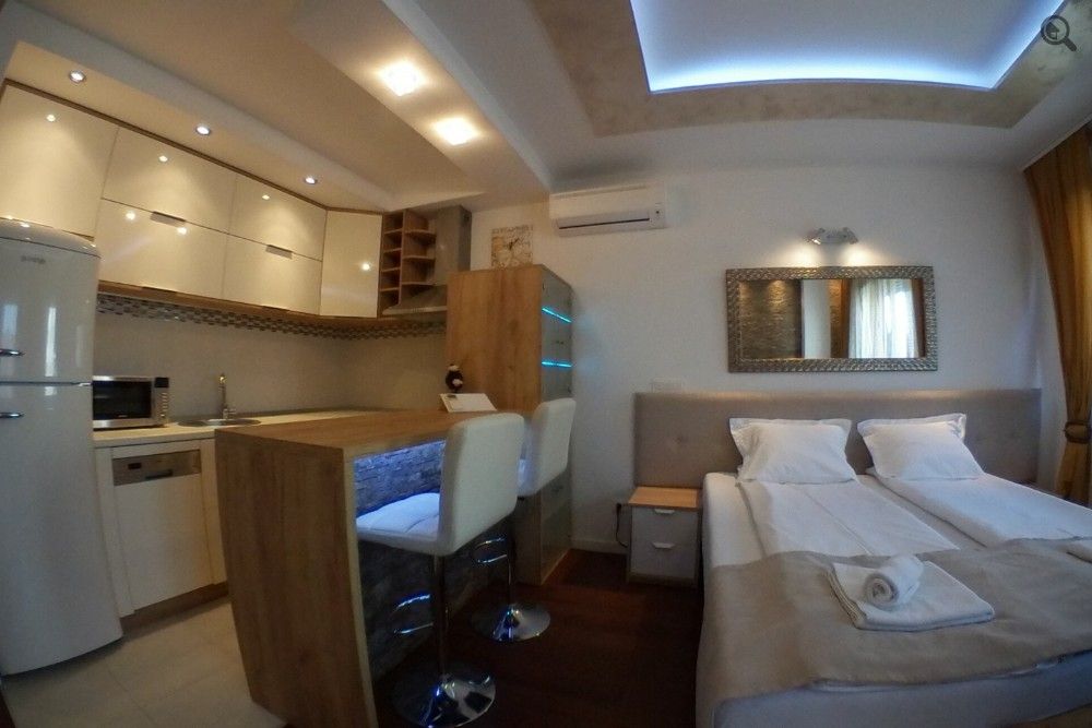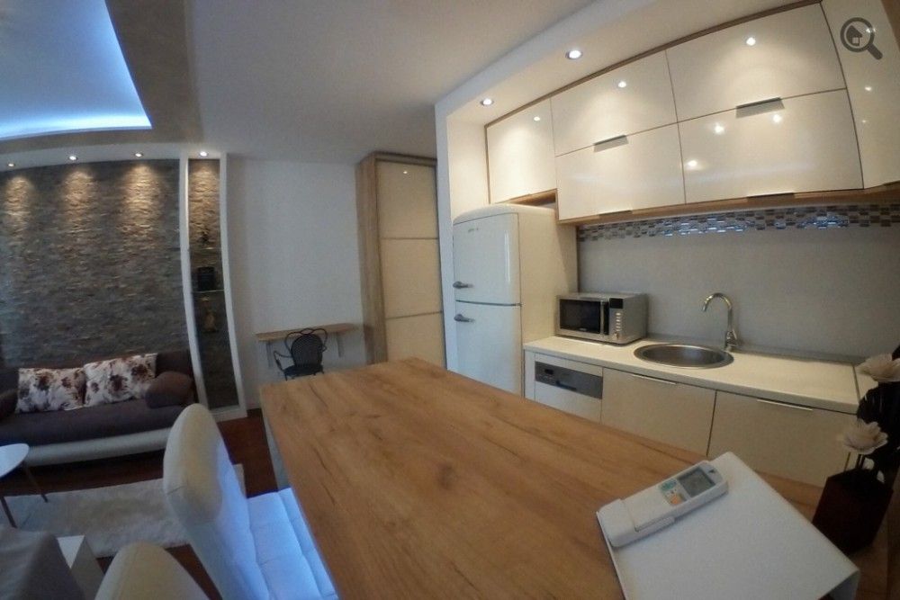 | Apartmani u Beogradu- Apartman A blok A 3 je po strukturi studio apartman koji se nalazi na trećem spratu zgrade sa liftom, u novoizgradjenom naselju A blok na Novom Beogradu. Apartman je nov, potpuno funkcionalan, predviđen za udoban smeštaj do 4 osobe. Sastoji se od prostorije u kojoj se nalazi udoban bračni krevet i garnitura na razvlačenje. Potpuno opremljena kuhinja pultom je odvojena od ostatka prostora, dok je kupatilo sa tuš kabinom veoma prostrano i moderno dizajnirano. Što se tiče pratećeg sadržaja, ovaj stan na dan poseduje klima uređaj, etažno grejanje, LCD tv, kablovsku tv, čistu posteljinu i peškire. Apartman se nalazi u blizini tržnog centra Delta city i okružen je mnogobrojnim kafićima i restoranima. Garaža je dostupna uz doplatu od 6 evra dan. Apartman se vikendom (subota, nedelja) može iznajmiti na minimum dva dana. | |